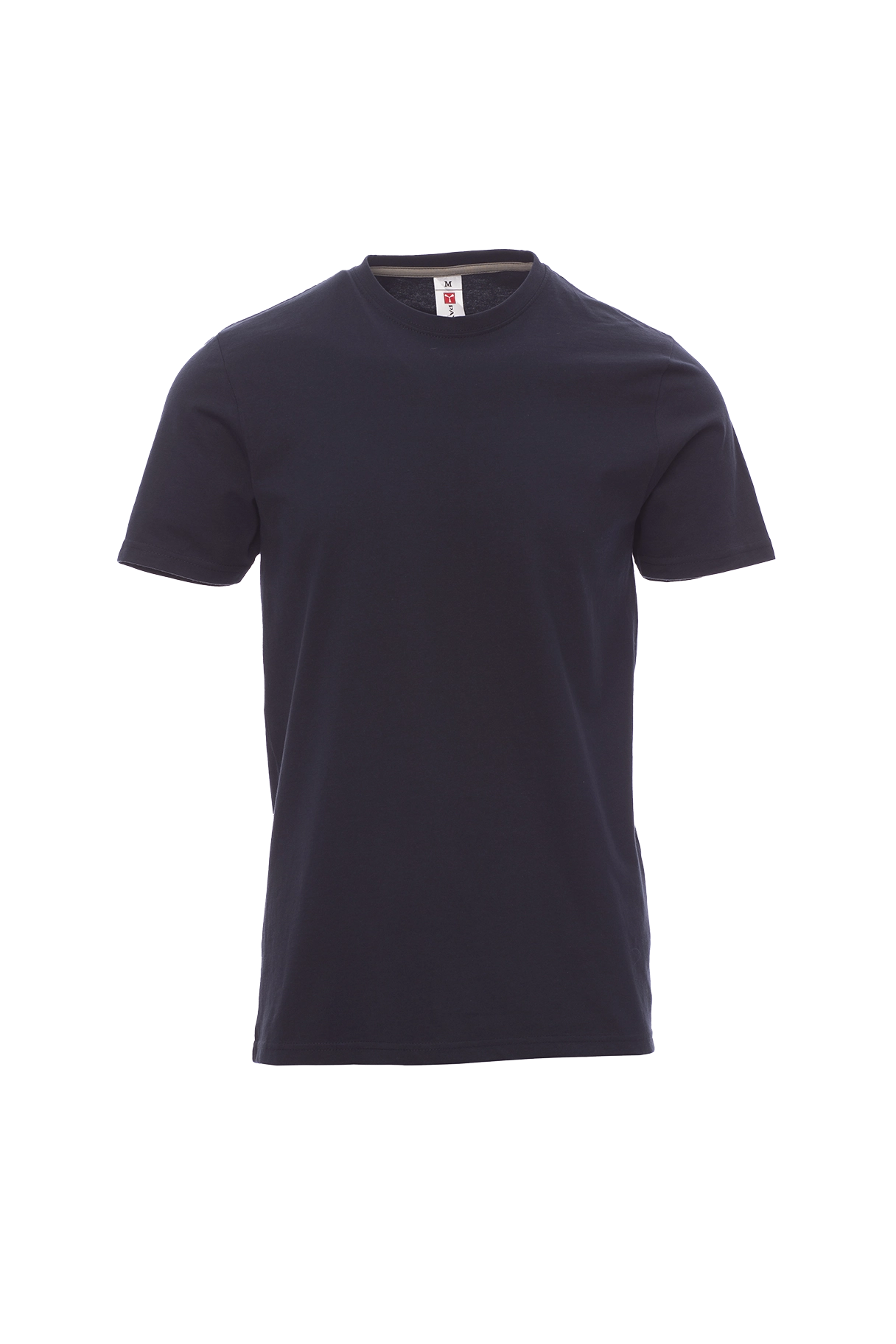 Herren-T-Shirt mit Rundhalsausschnitt, kurzärmelig, Feinripp-Kragen 1,5 cm aus Spandex-Mischgewebe mit Kappnaht an der Vorderseite, Verstärkungsband in Kontrastfarbe von Schulter zu Schulter, das im Kragen sichtbar ist, Stretchnähten, Seitennaht