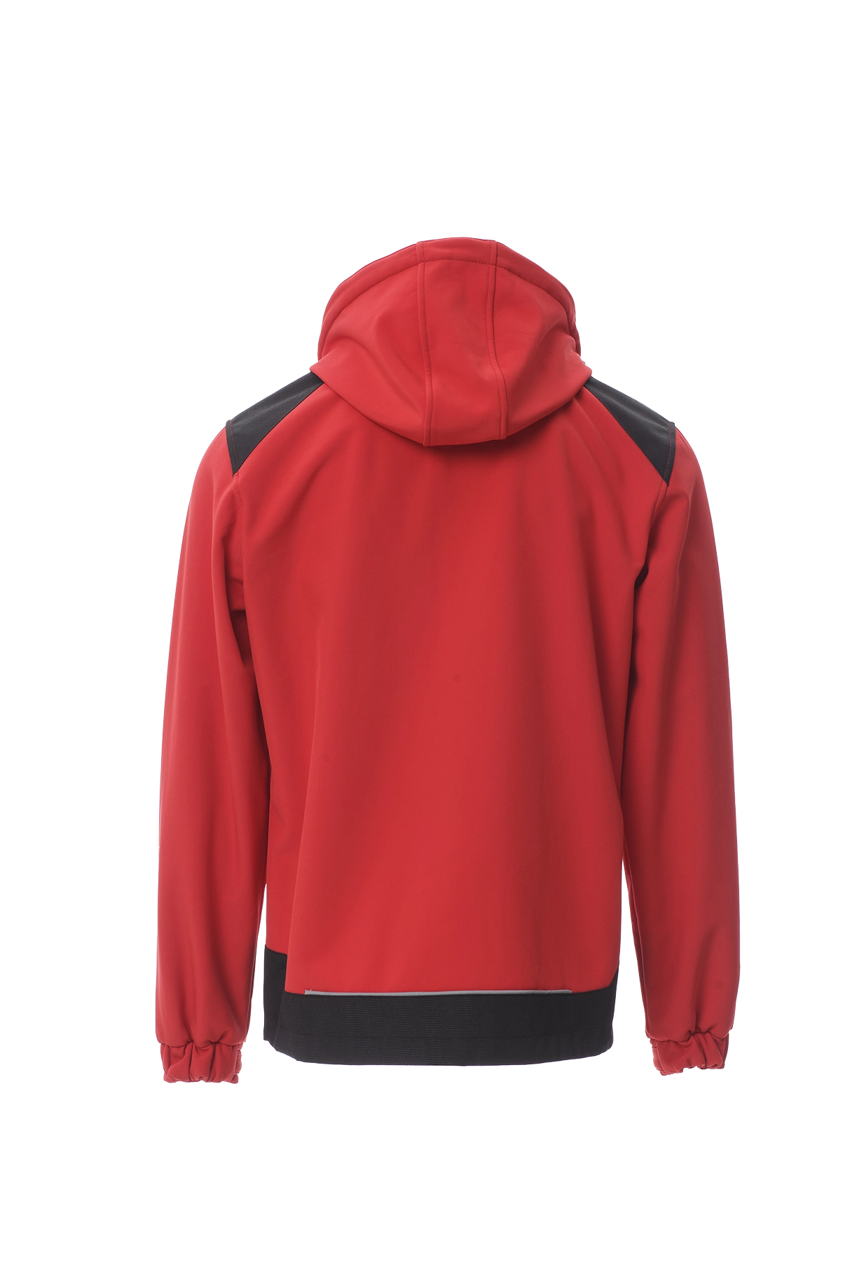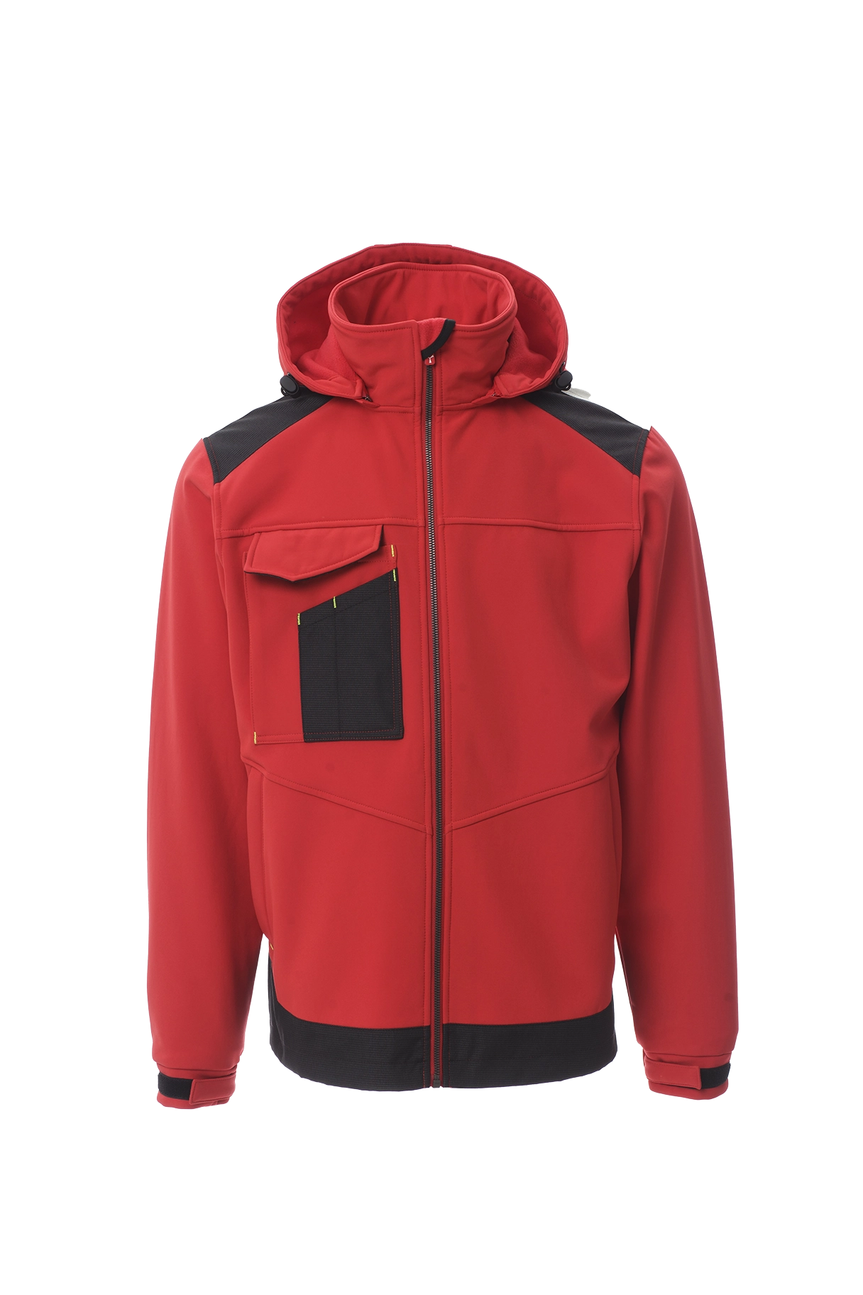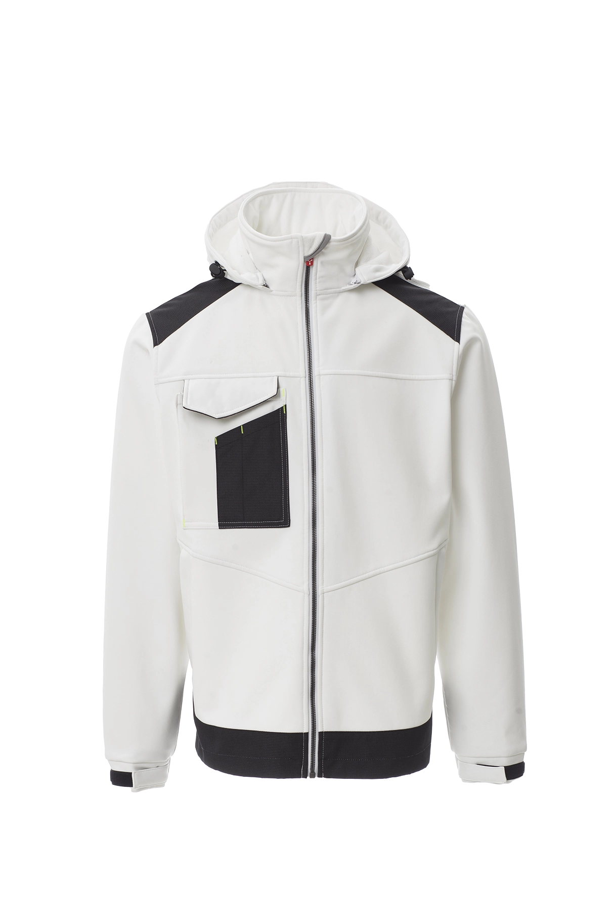 Taillierte Herrenjacke, Kugelärmel, durchgehender SBS-Reißverschluss aus Kunststoff mit „Semi-Auto-Lock“-Metallschieber, 2 seitliche Reißverschlusstaschen, 1 multifunktionale Brusttasche mit verdecktem Ausweishalter und LOCK SYSTEM-Verschlusspatte, 3M-Reflexstreifen an den Schultern, elastische Manschetten mit Klettverschluss, abtrennbare Kapuze mit verstellbarem elastischem Kordelzug mit Stoppern.